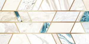 Благодаря художественному замыслу коллекция Dover объединяет природные текстуры мрамора и полудрагоценных камней. Спокойная графика матовых светлых плиток поддерживает наборный рисунок плитки с яркими вставками оникса от серого до ярко-голубого цвета. Глянцевые золотые линии на плитке красиво сочетаются с элегантным бордюром, входящим в коллекцию.