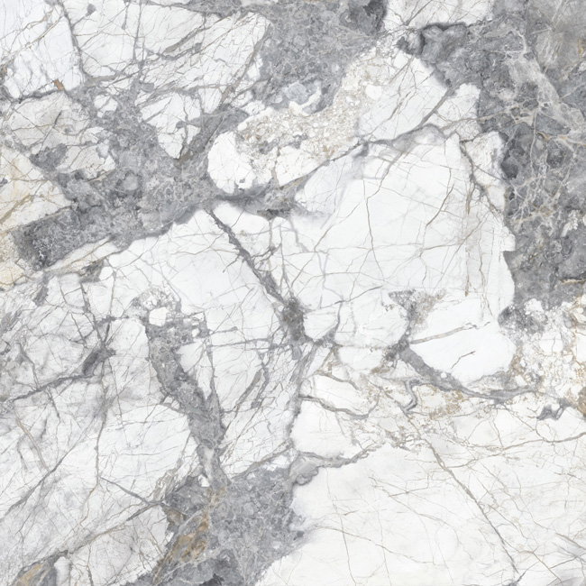 Яркие серо-голубые природные узоры этого неповторимого камня на белоснежном фоне дополнят металлические бордюры коллекции.