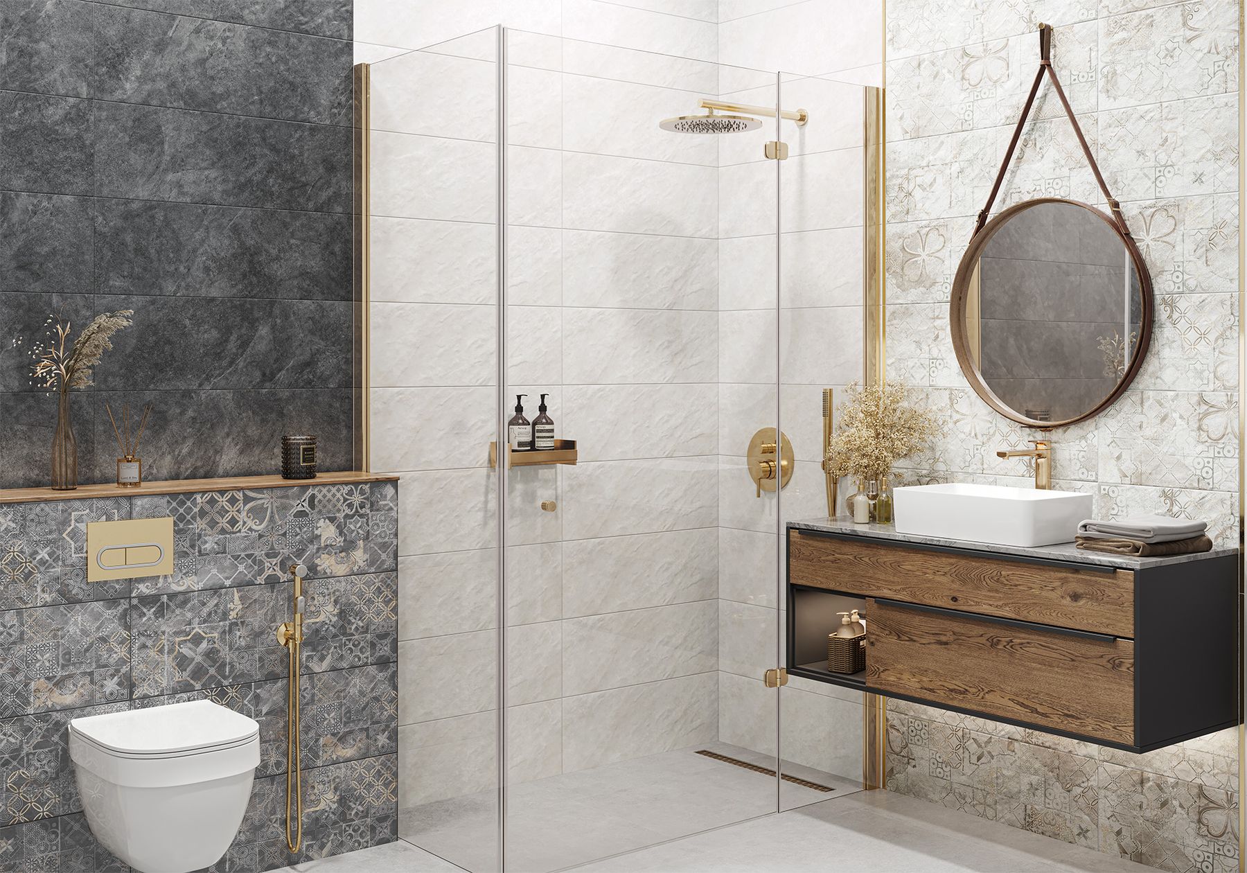 Настенная плитка коллекции Kreo (Крео) произведена в формате 246x740 мм с фактурой и текстурой камня, поэтому поверхность выглядит натурально и благородно. Акцентами этой серии являются два элемента в графитовой и бежевой гамме. Этот декоративный массив создан с использованием объемной гранили, которая нанесена по рисунку цветного изображения в стиле пэчворк. Все элементы коллекции произведены с ректифицированными краями, что позволяет сделать укладку плитки с минимальным швом.