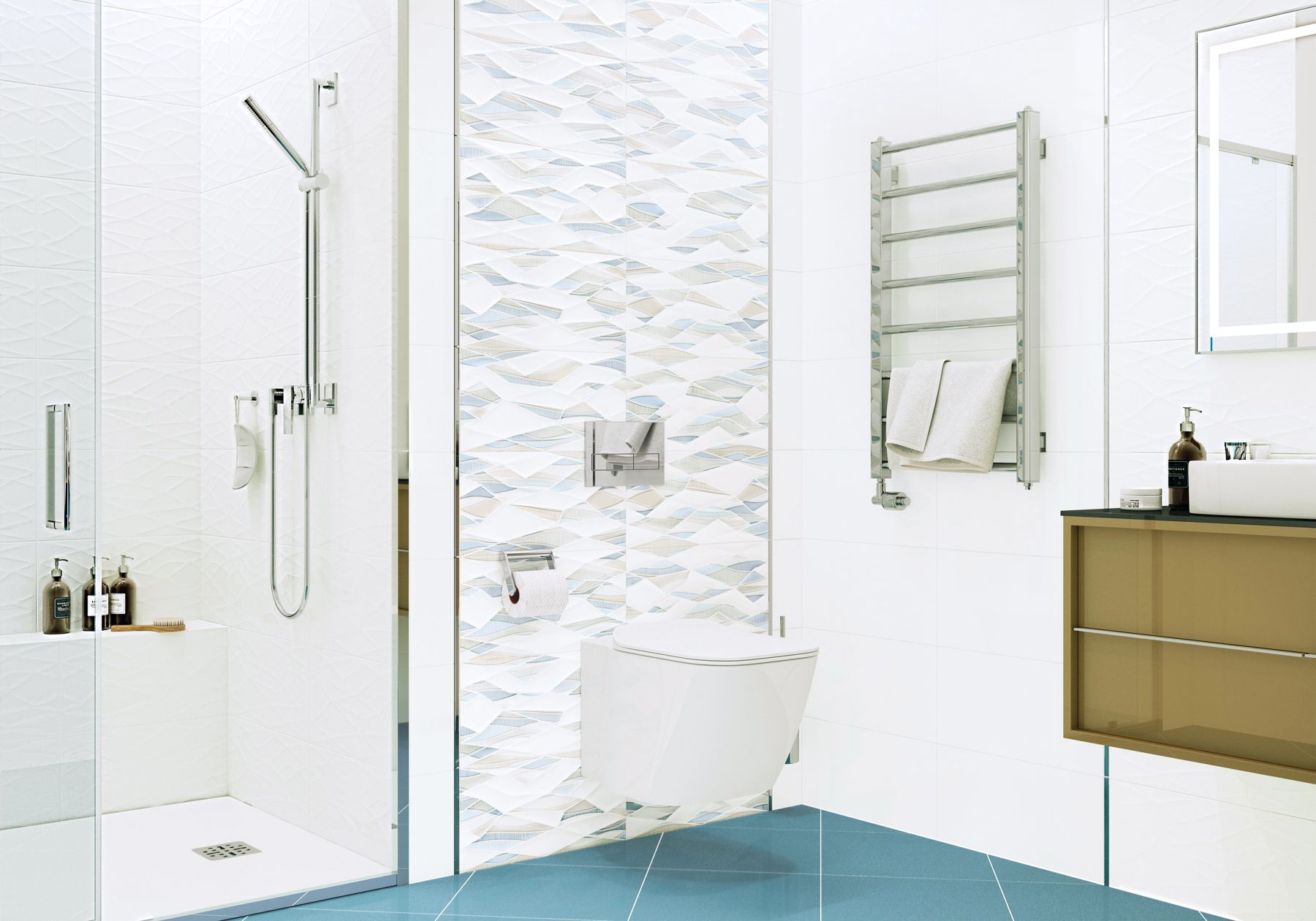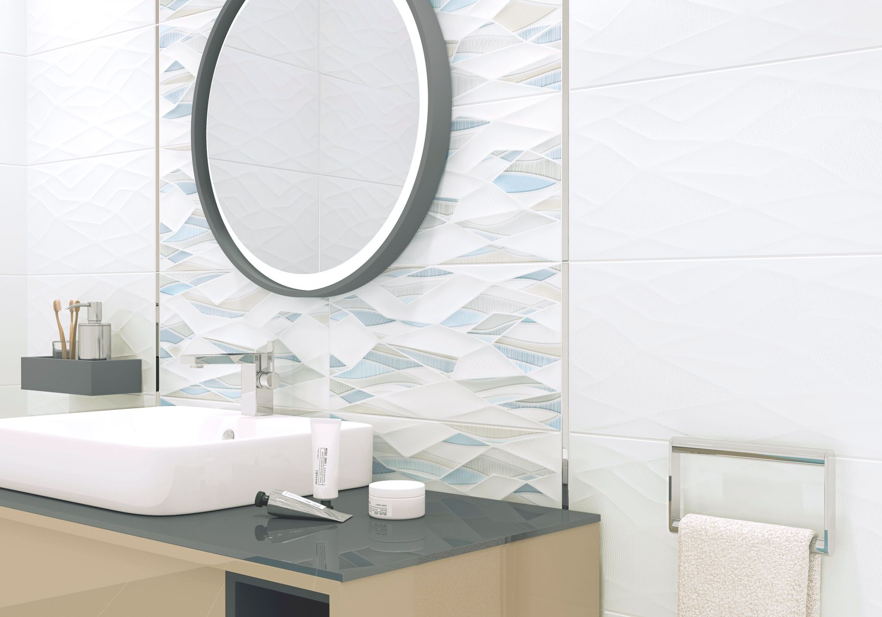 Коллекция Manhattan идеально пойдет для дизайна современного интерьера. Глянцевая белая плитка имеет сложный глубокий геометричный рельеф, который благодаря игре света на его гранях визуально увеличит помещение. Рельефная плитка с абстрактным разноцветным рисунком в сочетании с тонким серебристым бордюром позволит расставить акценты и создать цельный образ интерьера.