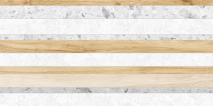 Современная коллекция Play в формате 300×600 мм — это сочетание терраццо, бетона и дерева. Такой микс текстур для тех, кто не боится экспериментировать. Глянцевая поверхность плиток дополнена спецэффектом матовых чернил, которые создают на поверхности сатиновую текстуру и объём. За счет этого бетонно-каменная поверхность получается сложной с интересным сочетанием глянцевой и матовой поверхности. Плитка с текстурой древесины нюдовых оттенков является мягким акцентом коллекции. Декоративный массив полоски из всех видов текстур коллекции поможет правильно распределить акценты в пространстве, не перегружая его. Керамические бордюры 13×600 мм в платиновом и золотом исполнении дополнят интерьер. Комплектуется коллекция лаппатированным керамогранитом 600×600 мм с дизайном дерева и бетона.